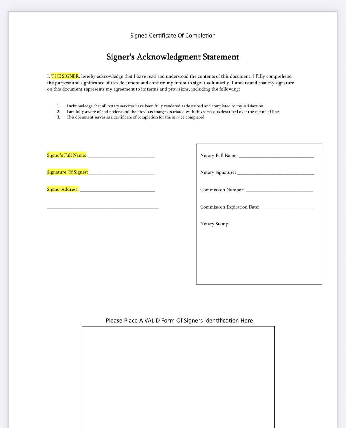 Not sure what this is for, Joe? I wouldn’t stamp that actually since it’s not a notarization, but I’d fill it out. I think I’ve seen it before or something like it. When they ask for the ID copy like that, I use the Adobe scan on my phone and then add it to the scan when I get home.